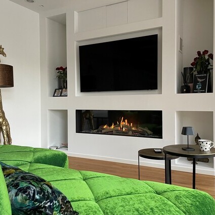 Der Gas-Kamin VISIO 160 F ist ein Frontkamin mit einwandfreier Feuersicht und gemütlichem Wohnzimmer.