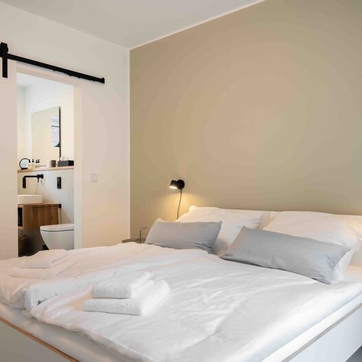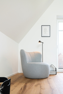 Geöltes Eichenparkett, mineralische Oberflächen und eine klare Linienführung prägen die Innenräume. Das Interior-Konzept entwickelte Heike Meinen mit einem feinen Gespür für Proportion, Materialität und Atmosphäre. Massgefertigte Möbel treffen auf ausgewählte Designmöbel; natürliche Farbtöne und reduzierte Formen schaffen eine ruhige, nordisch inspirierte Wohnkultur.