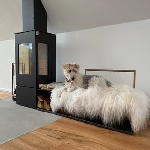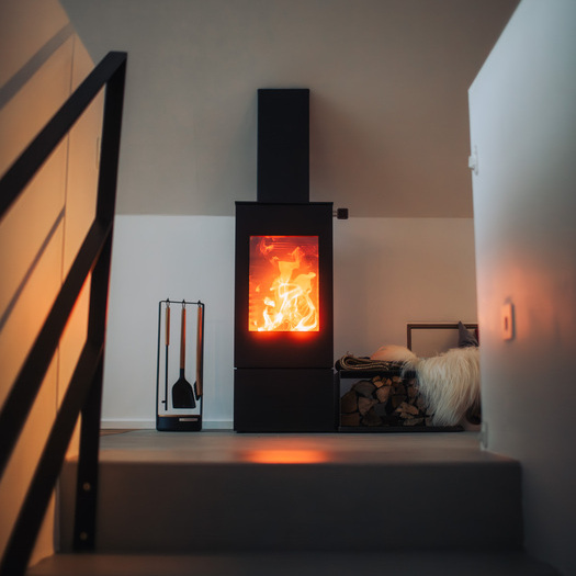 Im Zentrum dieser Ebene steht der Kaminofen als bewusst gesetzter Ankerpunkt.